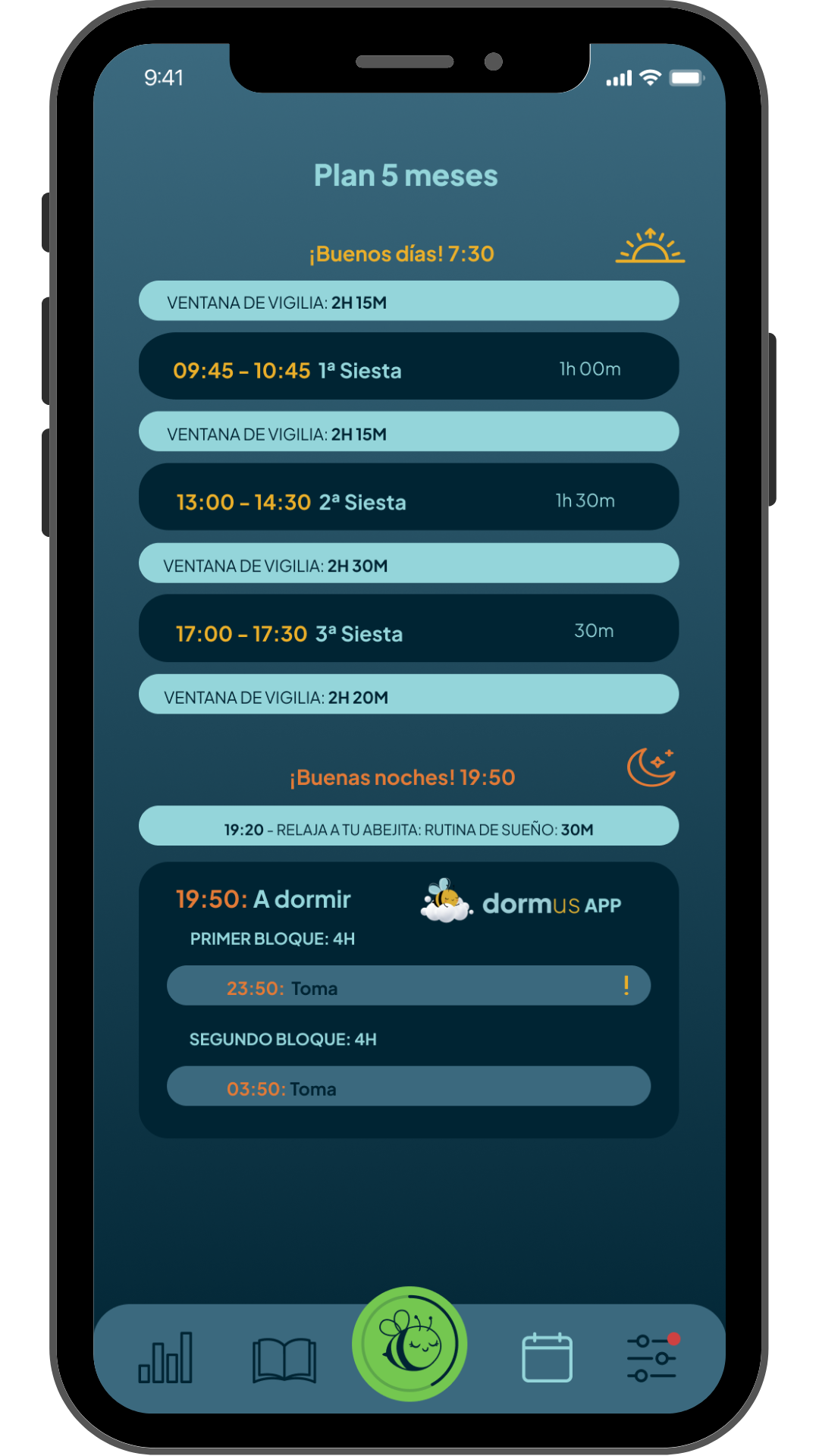La app Dormus adapta los métodos de sueño según la edad de tu bebé, ayudándote en la transición de siestas y ajustando horarios para garantizar un descanso de calidad.